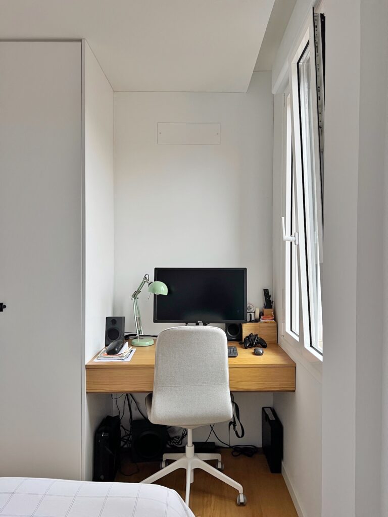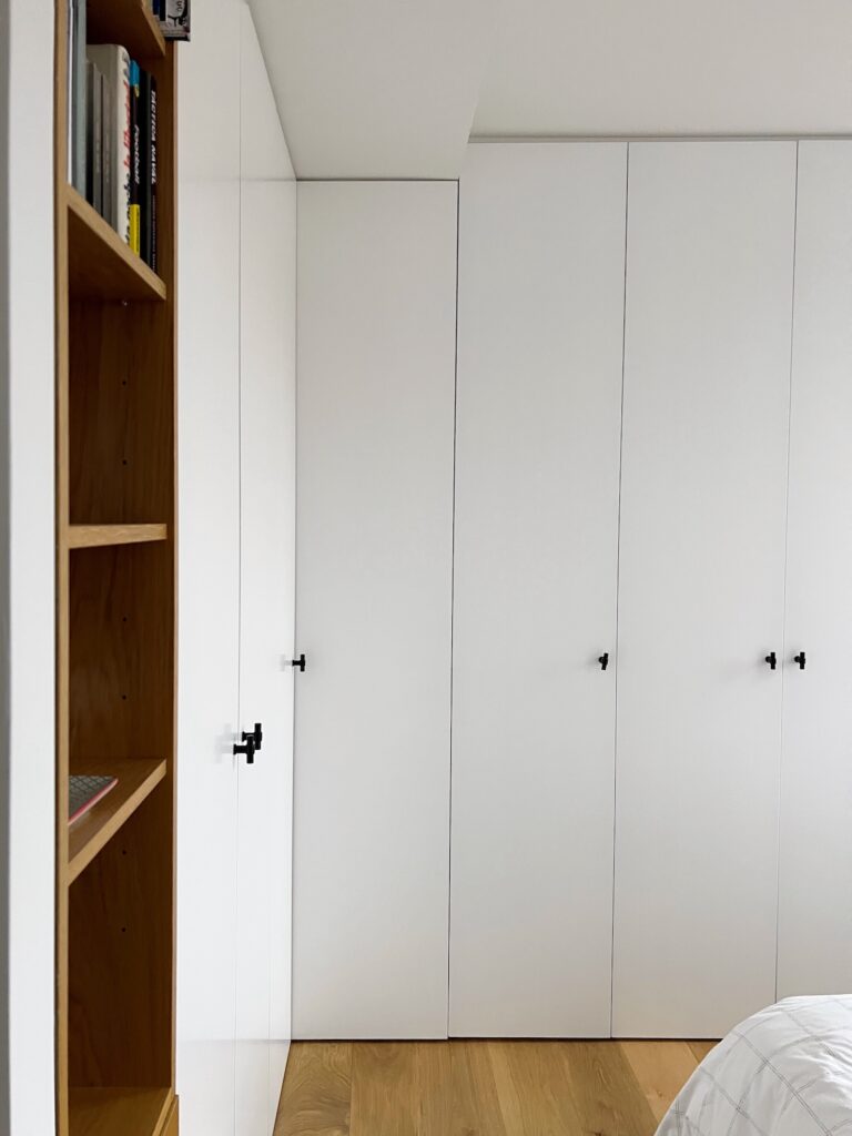 El resto de estancias se reorganizan con una clara intención de maximizar el almacenamiento, mediante grandes armarios integrados que aportan orden sin restar amplitud.