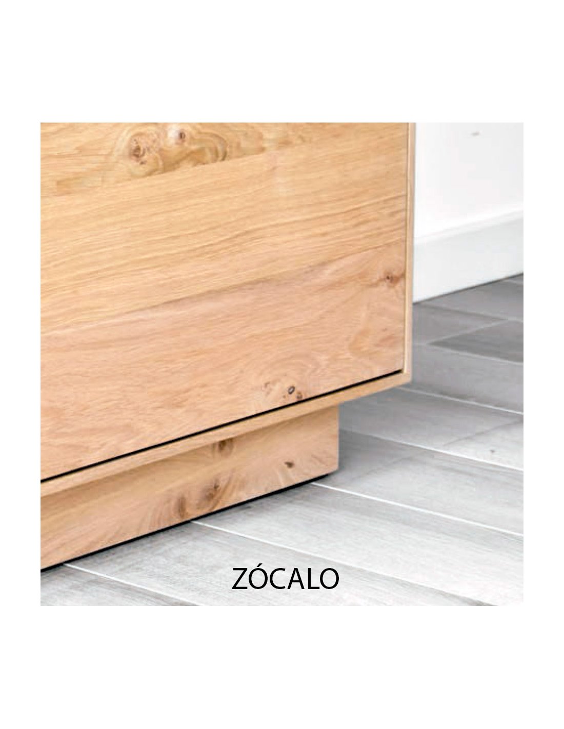 Además, puedes personalizar tu vitrina eligiendo el acabado (roble natural con o sin nudos o nogal) y el tipo de apoyo: libre, con zócalo o con patas a elegir entre una cuidada selección.