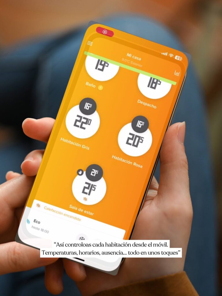 El ahorro real llega cuando solo calientas lo que necesitas: habitaciones en uso, horarios concretos, temperaturas más bajas cuando no estás en casa…